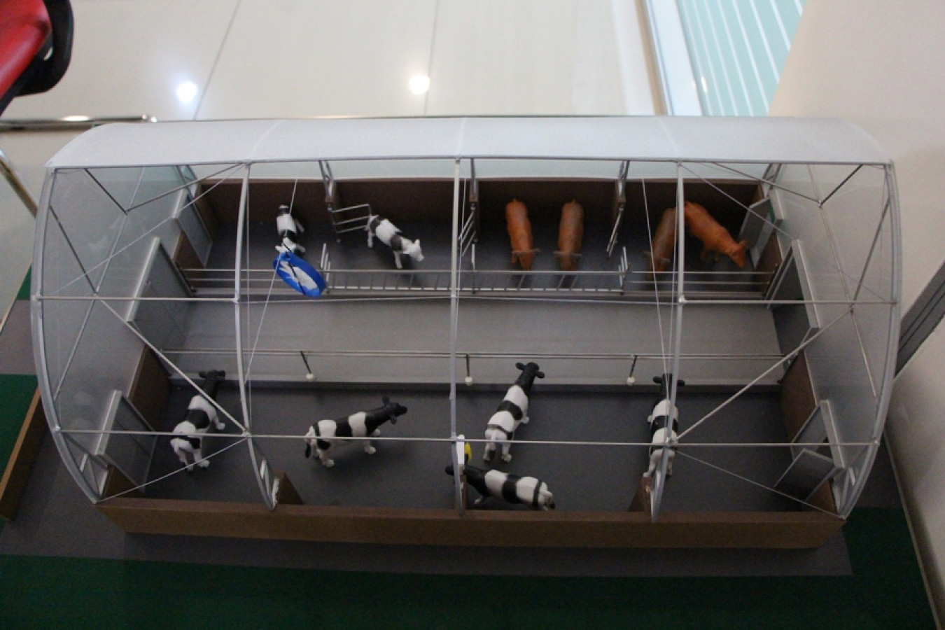 The innovation is the fact that these farms are built on the base of greenhouse constructions, enabling the saving of time and money during the construction, and the correctly selected height of the ceiling provides for clean air and proper ventilation. Due to the penetration of the covering, proportionate lightning and lack of shades are provided inside the farms, which prevents the presence of stress during animal locomotion. The milking process is carried out automatically at the milking parlor adjacent to the farm.