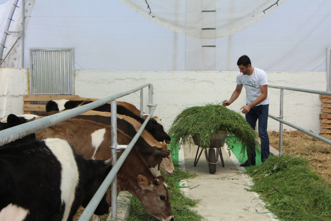 The design of the farms has been developed for a free-range keeping of 12, 27 and 42 animals. The innovation is the fact that these farms are built on the base of greenhouse constructions, enabling the saving of time and money during the construction, and the correctly selected height of the ceiling provides for clean air and proper ventilation. Due to the penetration of the covering, proportionate lightning and lack of shades are provided inside the farms, which prevents the presence of stress during animal locomotion. As Artak Kamalyan, RA Deputy Minister of Economy mentioned in his welcome speech, "Our policy is not to develop agriculture, but innovative agriculture, which actually changes quality".