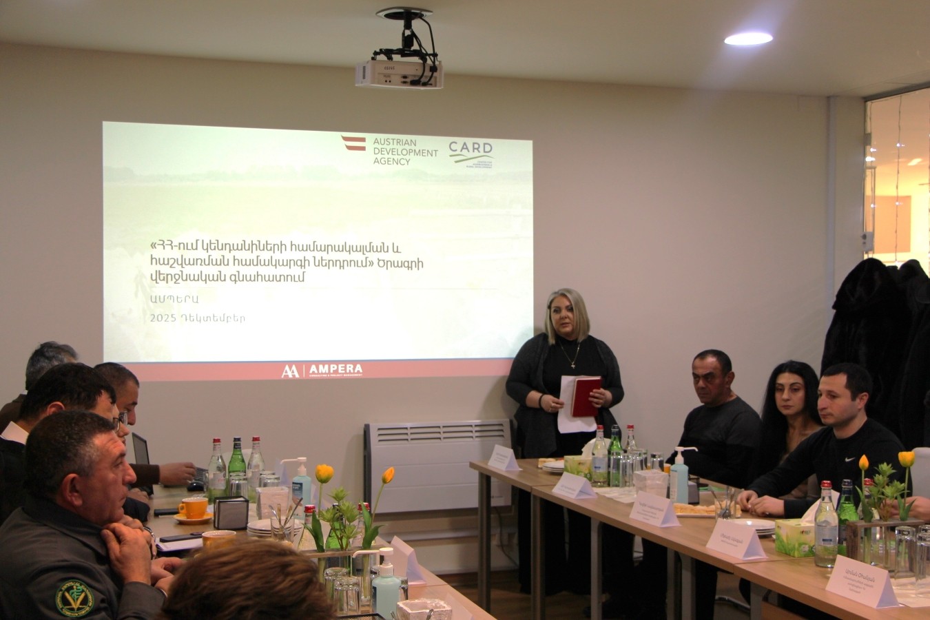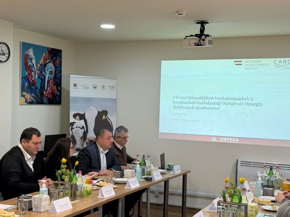 On December 23, 2025, the presentation of the final results of the Animal Identification and Registration Project (AI&R) was held at the CARD Foundation, led by the Deputy Minister of Economy of the RA, Ms. Tatevik Sargsyan, and the Deputy Head of the Yerevan Office of the Austrian Development Agency, Ms. Nola Alanakyan.